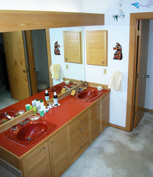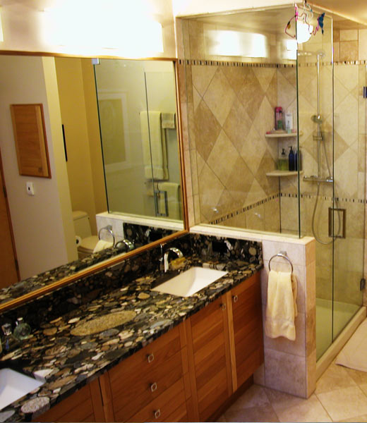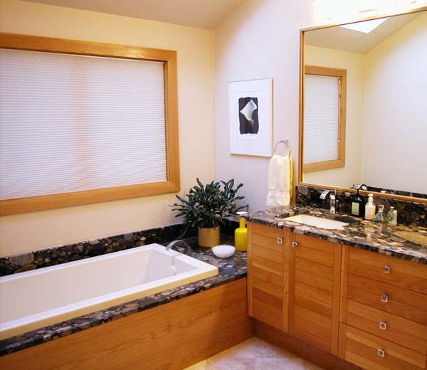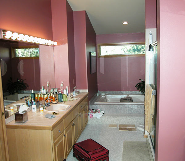 Our featured project illustrates the problem areas of a 1980’s master bathroom. The design approach included functional and aesthetic opportunities available without adding square footage.